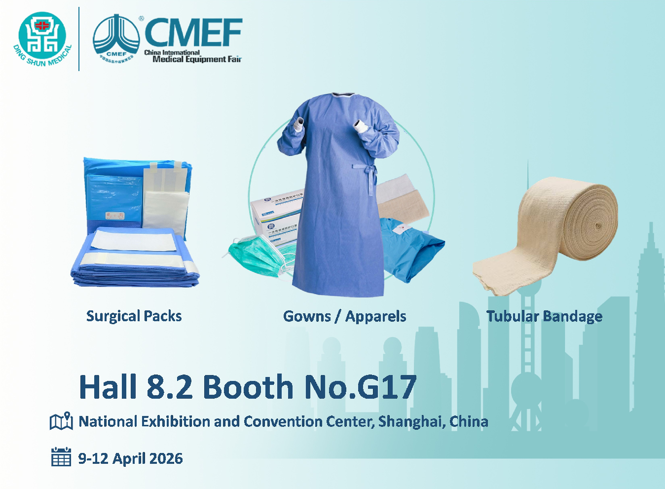 Compania își va prezenta Pachete chirurgicale , Rochii/Haine , și Bandaj tubular linii de produse la Sala 8.2, Standul nr. G17. Evenimentul are loc la Centrul Național de Expoziții și Convenții din Shanghai.